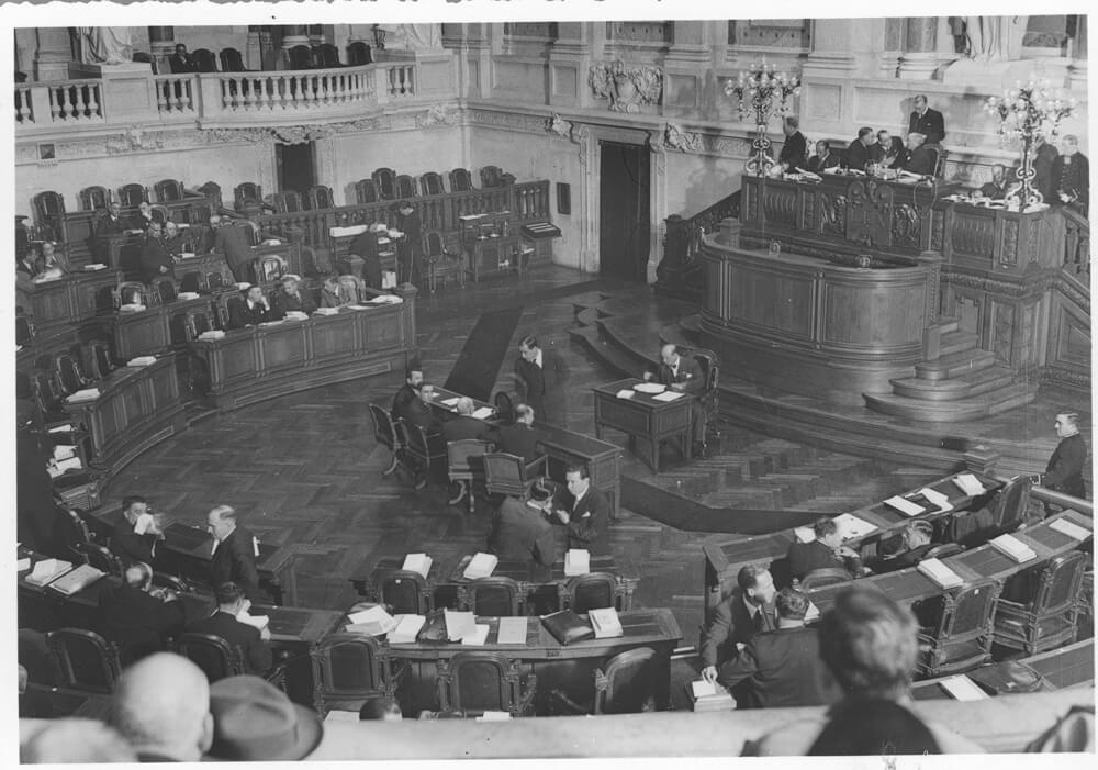 Aspeto da Sala das Sessões da Assembleia Nacional, 1937. AHP.
