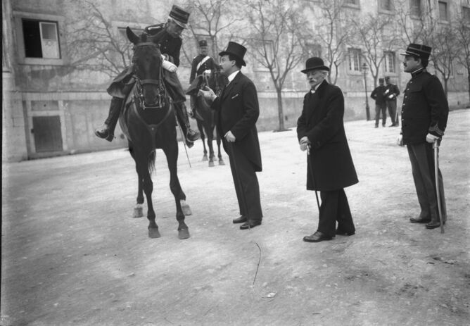 Manuel Monteiro, Presidente da Câmara dos Deputados, conferencia com as forças que impedem o acesso ao Palácio de S. Bento por determinação do Governo de Pimenta de Castro, após este ter encerrado o Congresso da República.
